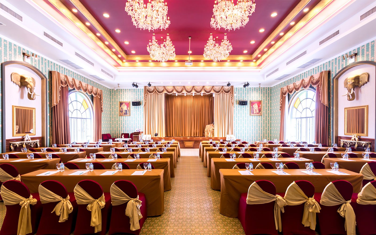 For meetings and conferences, อุปกรณ์ต่างๆ สำหรับการประชุมสัมมนา อาทิเช่น ไมค์ , กระดาษ , ดินสอ , โทรสาร , จอสกรีนขนาดใหญ่ และเครื่องเล่น ซีดี ดีวีดี เป็นต้น อุปกรณ์เชื่อมต่อสัญญาณอินเตอร์เน็ต Wireless Internet โต๊ะต้อนรับหน้าห้องจัดงานตกแต่งห้องจัดงานอย่างสวยงามตามความเหมาะสม